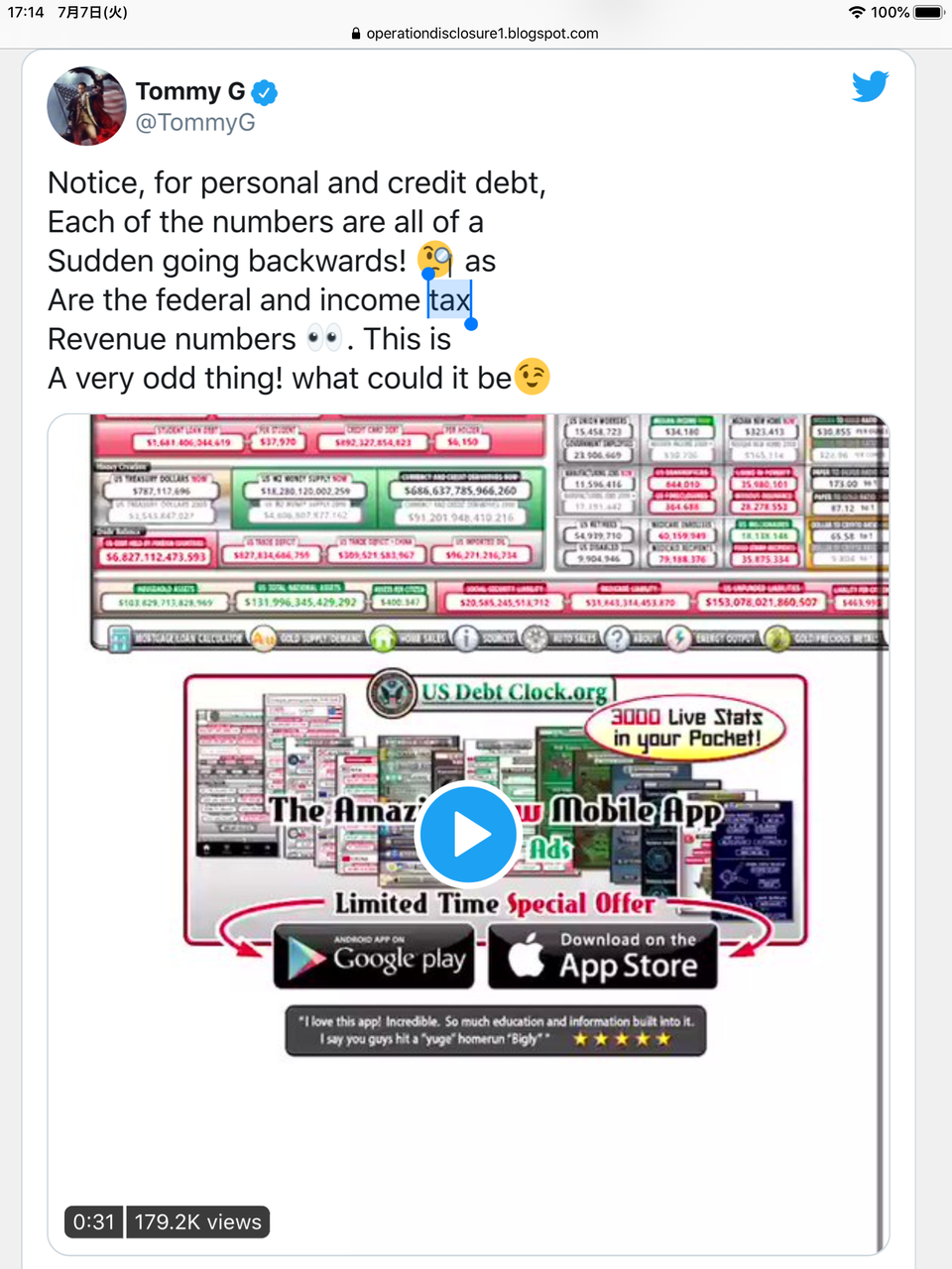トミーGが興味深いツイートを投稿しました。 彼はusdebtclockウェブサイトから米国の債務時計のビデオを含んでいます。 すべての債務数は急速に後退しています!