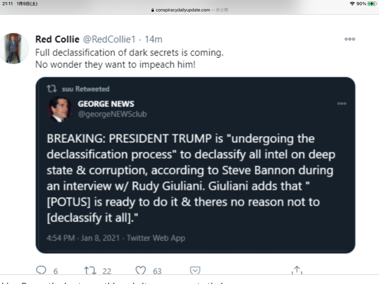速報:トランプ大統領は、ルドルフ・ジュリアーニとのインタビューでスティーブ・バノンによると、ディープステートと汚職に関するすべての情報を機密解除するために「機密解除プロセスを実施中」です。 ジュリアーニは、「[POTUS]はそれを行う準備ができており、[すべてを分類解除]しない理由はない」と付け加えています。
