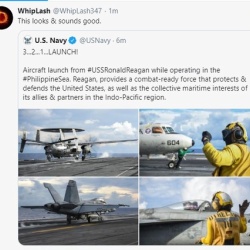 坂本花子 1これは見た目も音も良いです。3…2…1…打ち上げ!#PhilippineSeaで運航中の#USSRonaldReaganからの航空機の打ち上げ。 レーガンは、米国を保護および防御する戦闘準備の整った部隊と、インド太平洋地域の同盟国およびパートナーの海事上の利益を提供します。速 ...